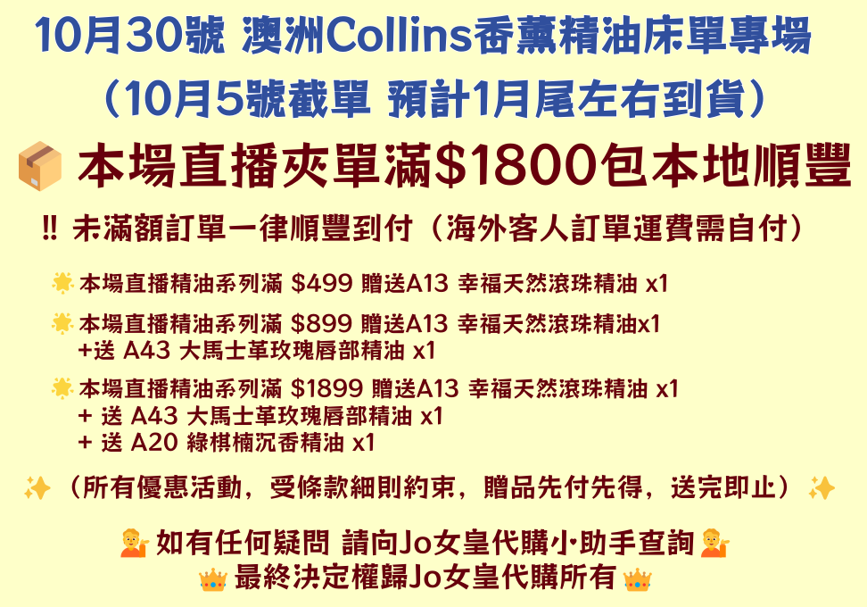 30/10 澳洲Collins香薰精油床單專場