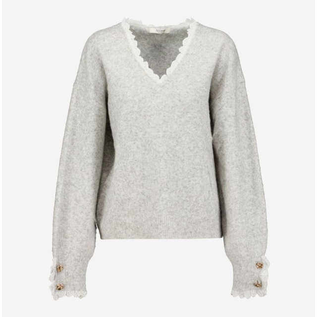 K18 英國代購 - BY CLARA Grey Lace Trim V Neck Jumper