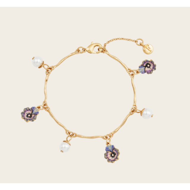 F3 Gold Pansy & Pearl Charm Bracelet