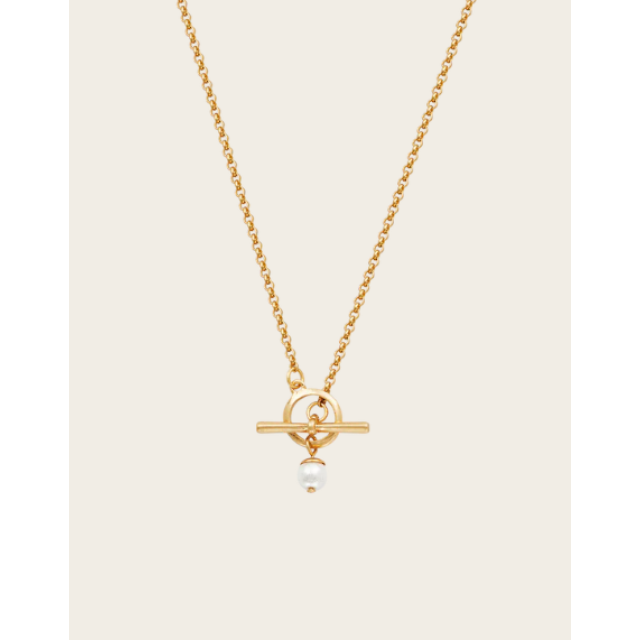 F5 Gold Pearl Toggle Charm Necklace