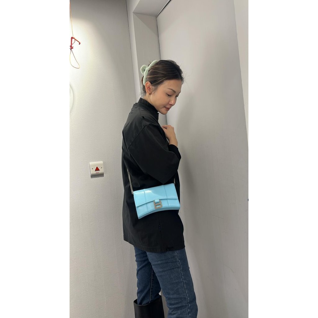 B54 英國代購 - Hourglass Wallet Shiny BOx Calf Sea Blue