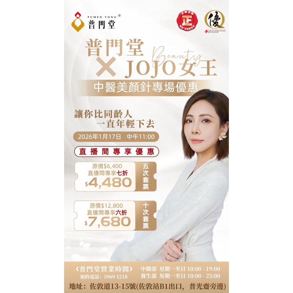 地點:普門堂(佐敦佐敦道13-15號,地鐵站B1出口)