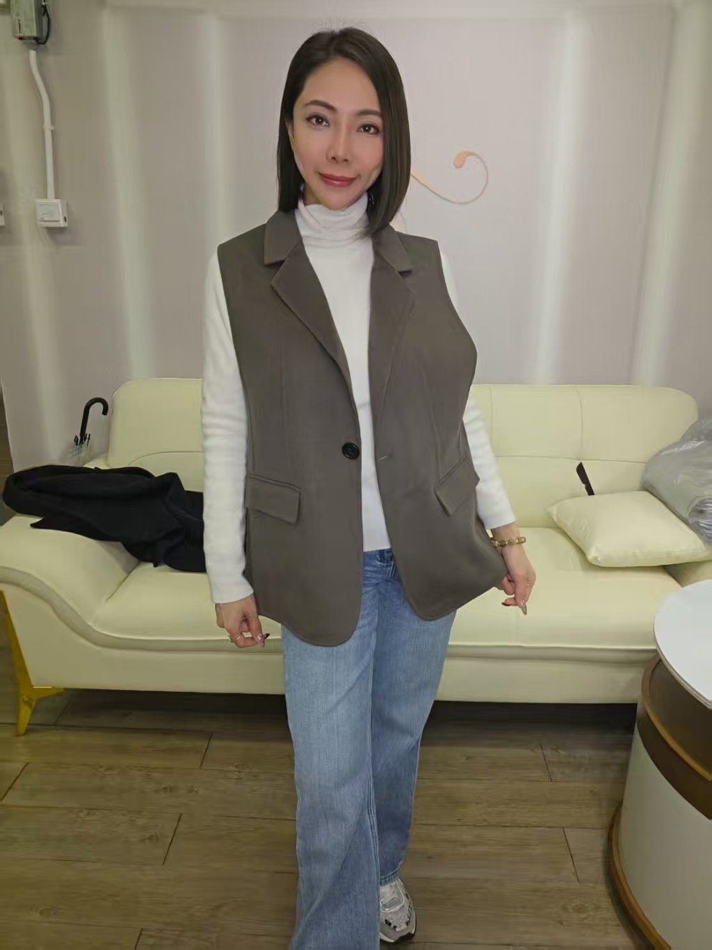 C4 韓國羊毛背心外套 (啡灰色)
