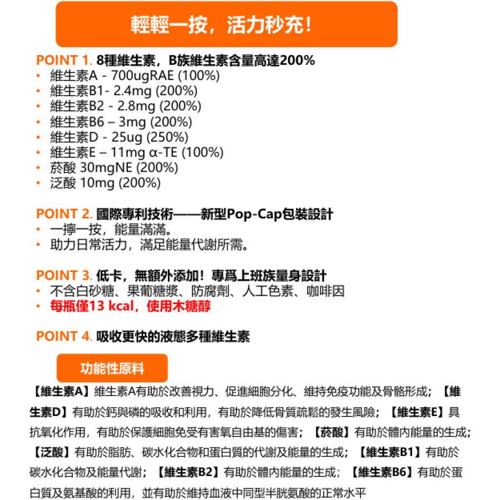 POINT 1. 八種維生素,全面補充!