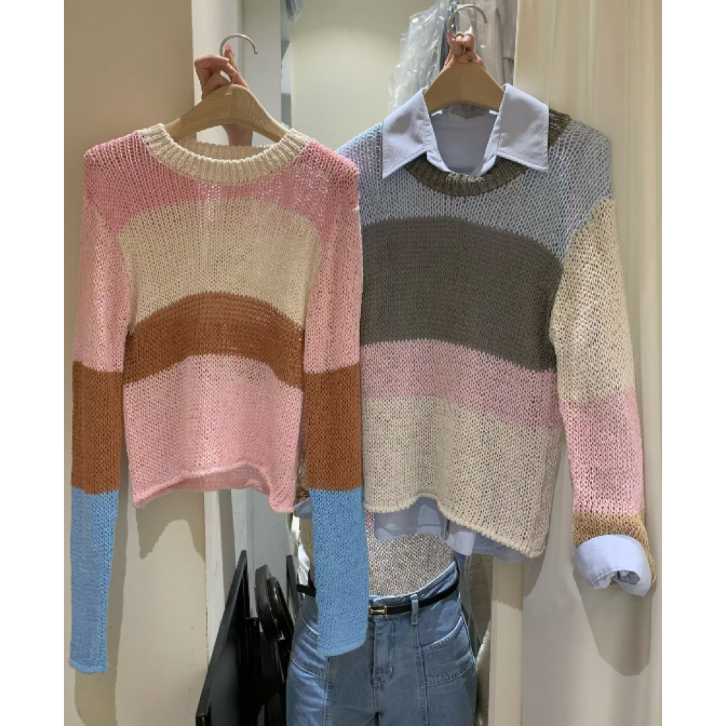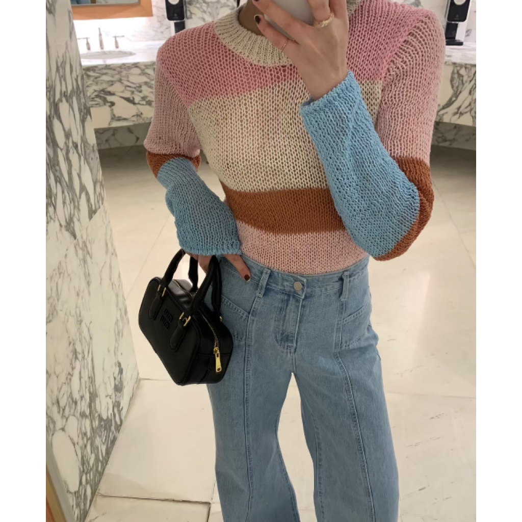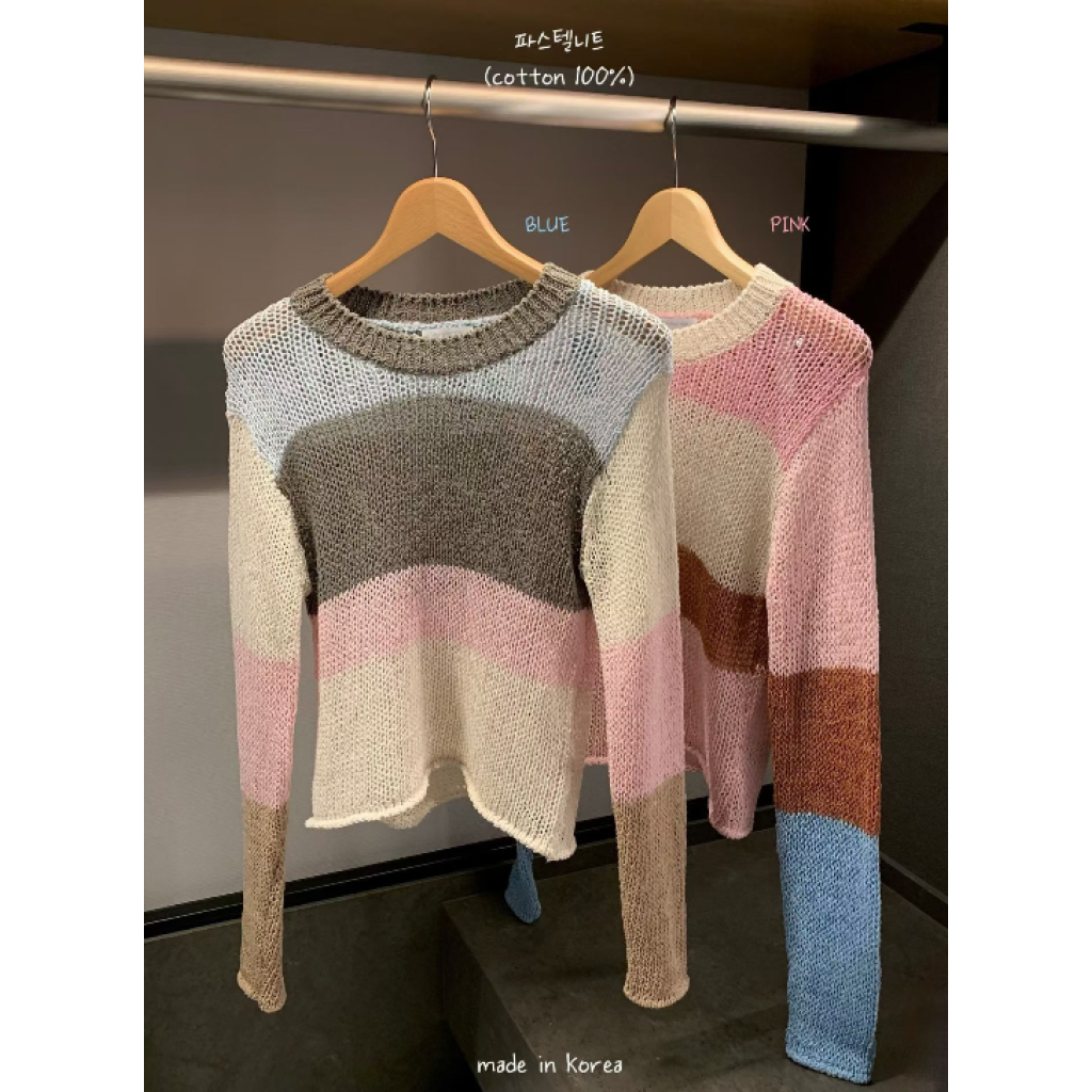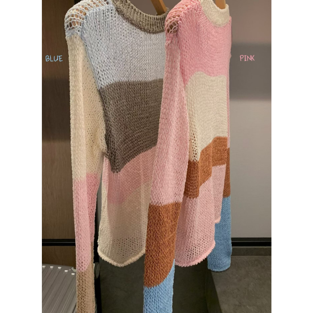 E14 針織上衣(藍色/粉色)