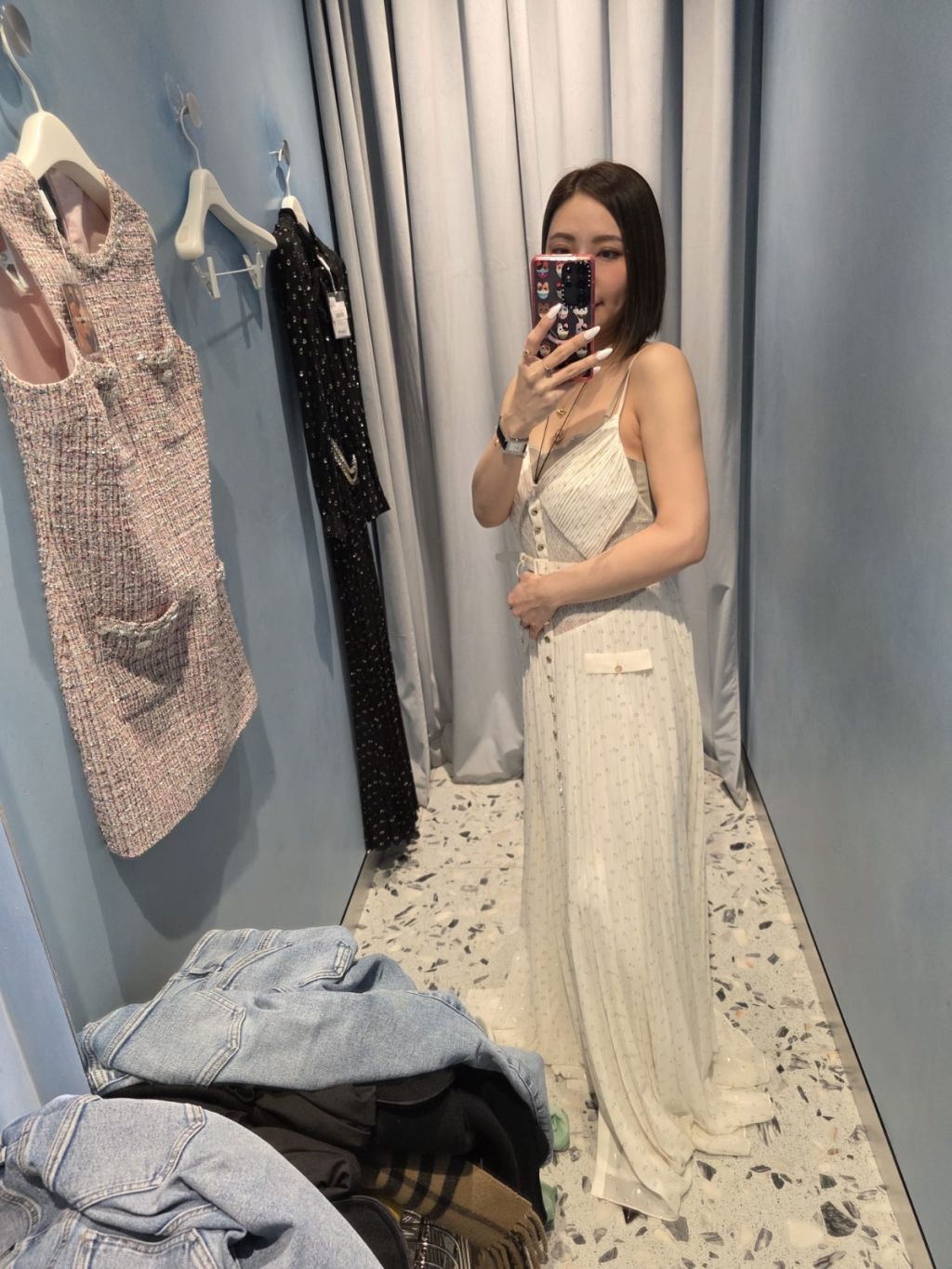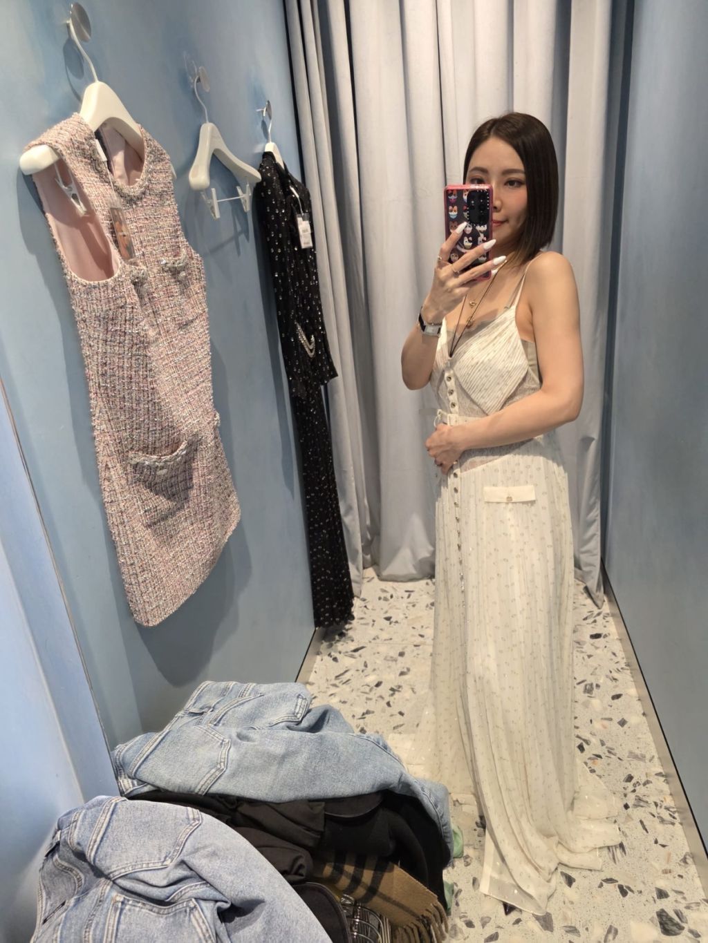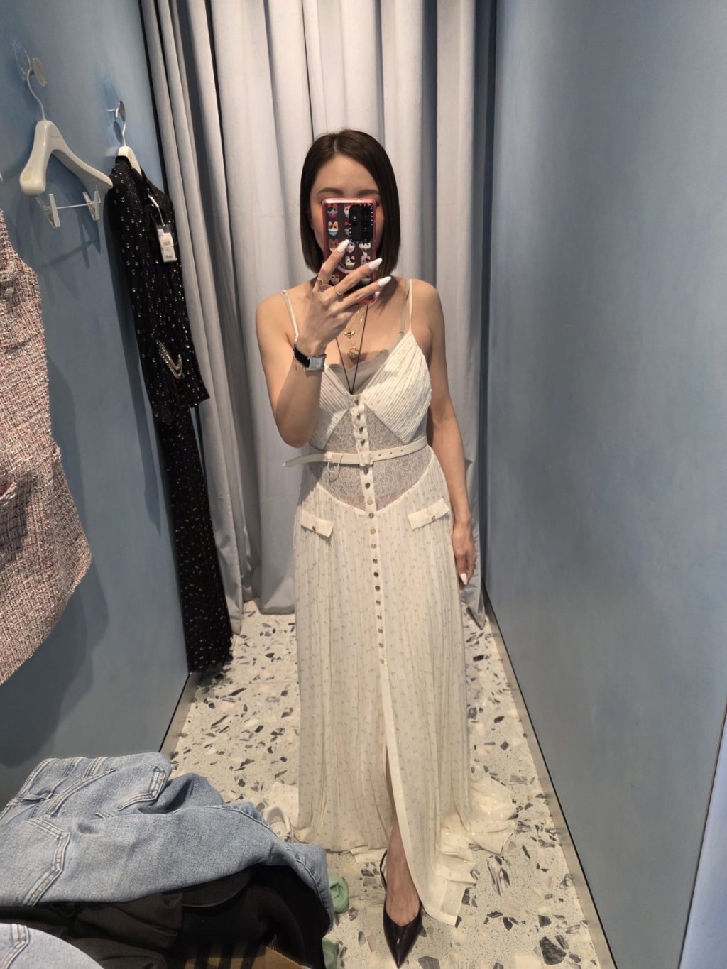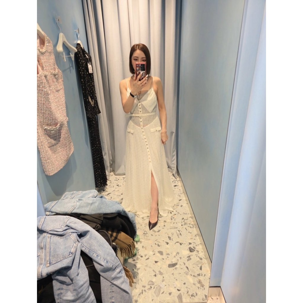 S2 白色V領長裙
