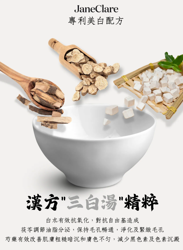 Janeclare專利美白配方-参照漢方""三白湯""精粹。
