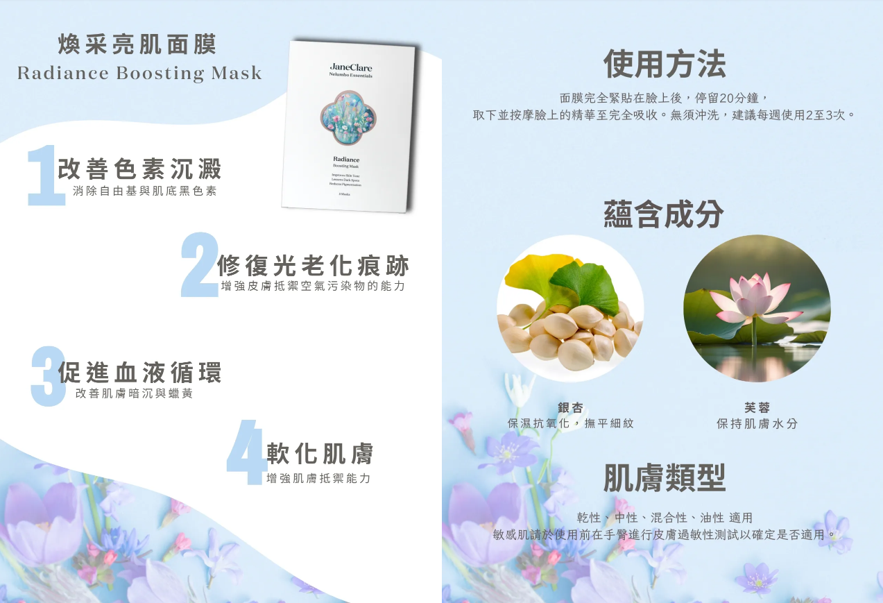 J19 煥采亮肌面膜 Radiance Boosting Mask 5pcs/box(買1送1)