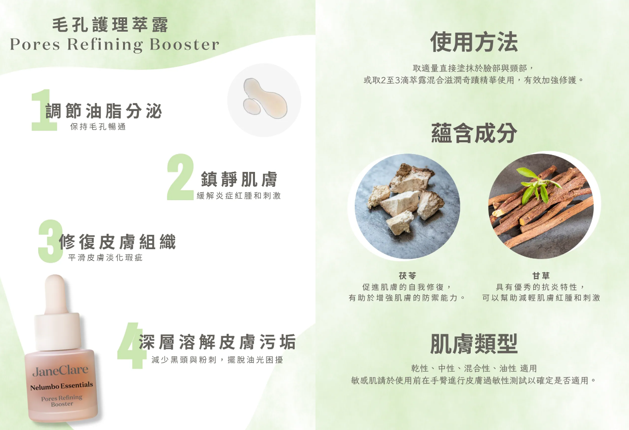 ·茯苓調節油脂分泌,保持毛孔暢通,淨化及緊緻毛孔