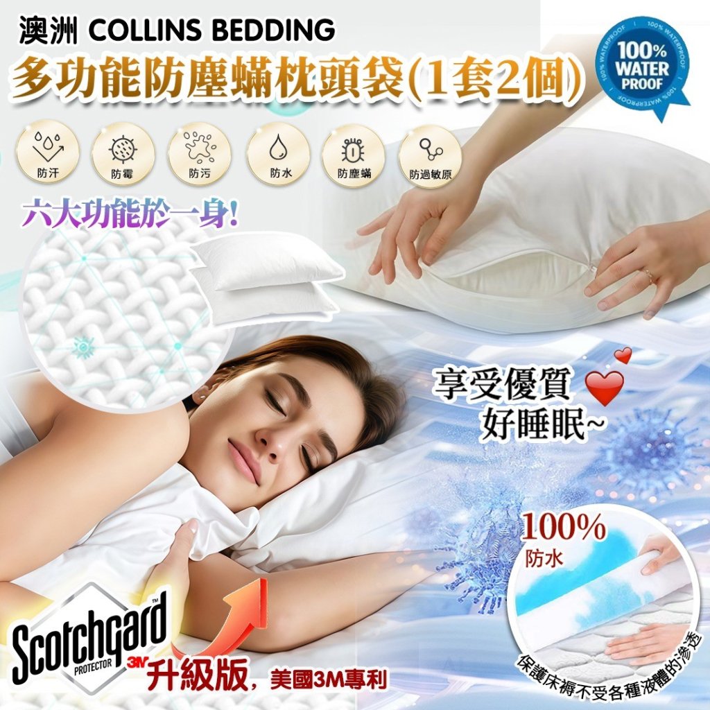 AH Collins Bedding 多功能防塵蟎枕頭袋(1套2個)