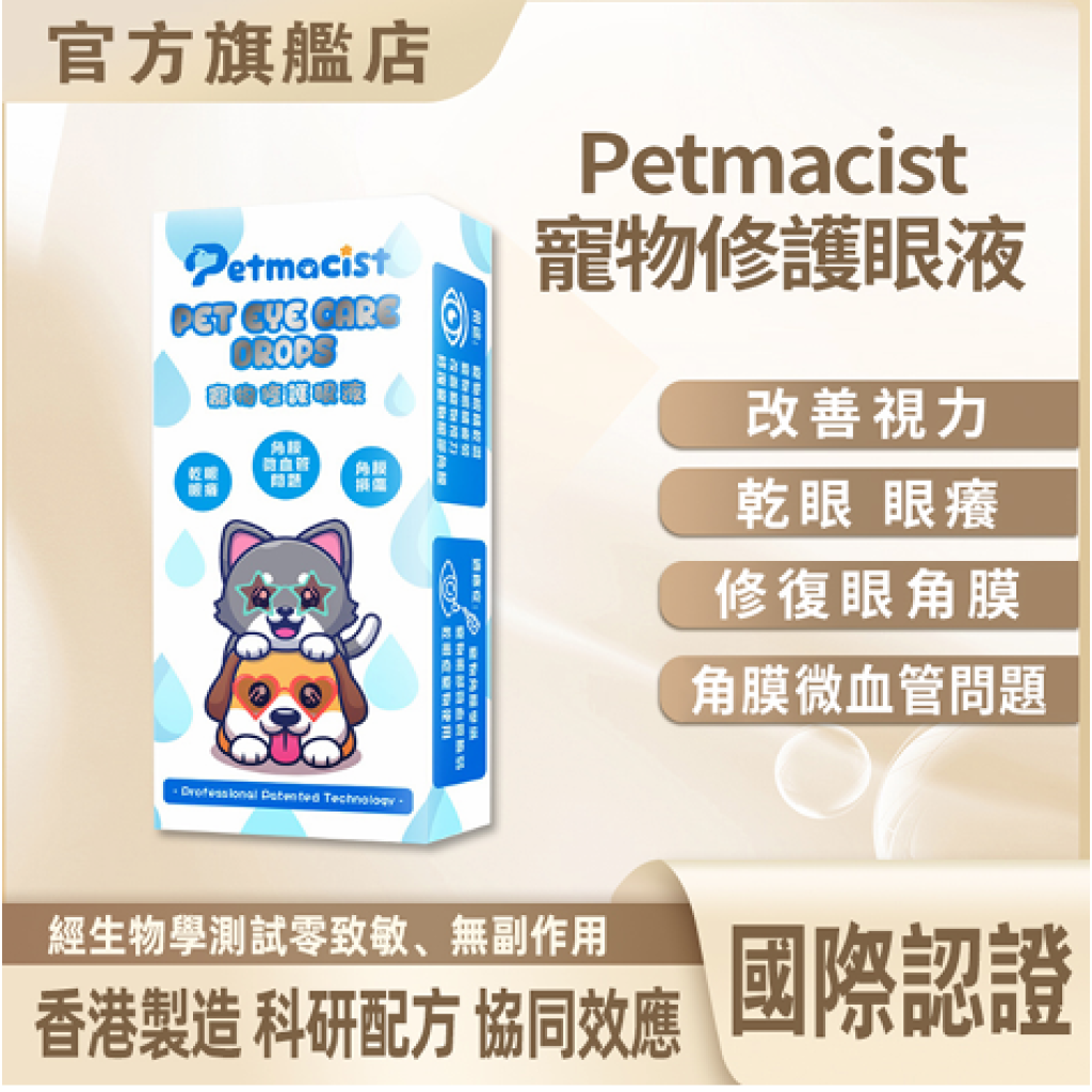 Petmacist 寵物修護眼液專為解決寵物眼部健康問題而設計,能有效緩解乾眼、眼癢、角膜微血管問題,促進角膜損傷修復並改善視力健康。以高效成分FGF和EGF為核心,提供卓越的修復力與護理效果,讓您的寵物重獲清晰視界與舒適眼部感受。